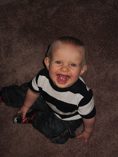 Nicholas just cut his 5th tooth. I didn't even notice it happening! This is unlike the first couple of teeth. When Nick got his first tooth (bottom right) he developed croup. He was literally barking like a seal. When he got his 2nd tooth (bottom left) he caught a bug and was throwing up and had diarrhea. That was rough. What I learned from our family doctor was that when babies are teething their immune systems are compromised and so they are more susceptible to illness.